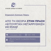 Αναφερόμενος στη Μεταρρύθμιση της Τοπικής Αυτοδιοίκησης, σημείωσε ότι βρισκόμαστε πλέον σε μια κρίσιμη καμπή, όπου «η επόμενη μέρα απαιτεί καθαρές αποφάσεις και μόνιμες λύσεις και όχι προσωρινές διευθετήσεις». Παράλληλα, έγινε ειδική αναφορά στις ευρωπαϊκές αρχές αποκέντρωσης και στην Ευρωπαϊκή Χάρτα Τοπικής Αυτοδιοίκησης, ως πλαίσιο που πρέπει να καθοδηγεί τις εθνικές πολιτικές.