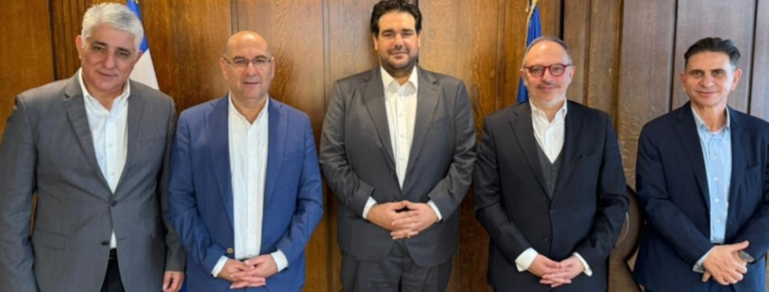 Αντιπροσωπεία της Ένωσης Δήμων Κύπρου, αποτελούμενη από τον Πρόεδρό της και Δήμαρχο Λάρνακας, κ. Ανδρέα Βύρα, το μέλος του Διοικητικού Συμβουλίου και Δήμαρχο Λευκωσίας, κ. Χαράλαμπο Προύντζο και τον Διευθυντή της, Δρ Μιχάλη Σωκράτους, πραγματοποίησε χθες, Παρασκευή, 6 Φεβρουαρίου 2026, συνάντηση με το Γραμματέα της Κεντρικής Ένωσης Δήμων Ελλάδας, κ. Δημήτρη Καφαντάρη, στην Αθήνα, παρουσία και του Έλληνα Υπουργού Εσωτερικών, κ. Λιβάνιου.